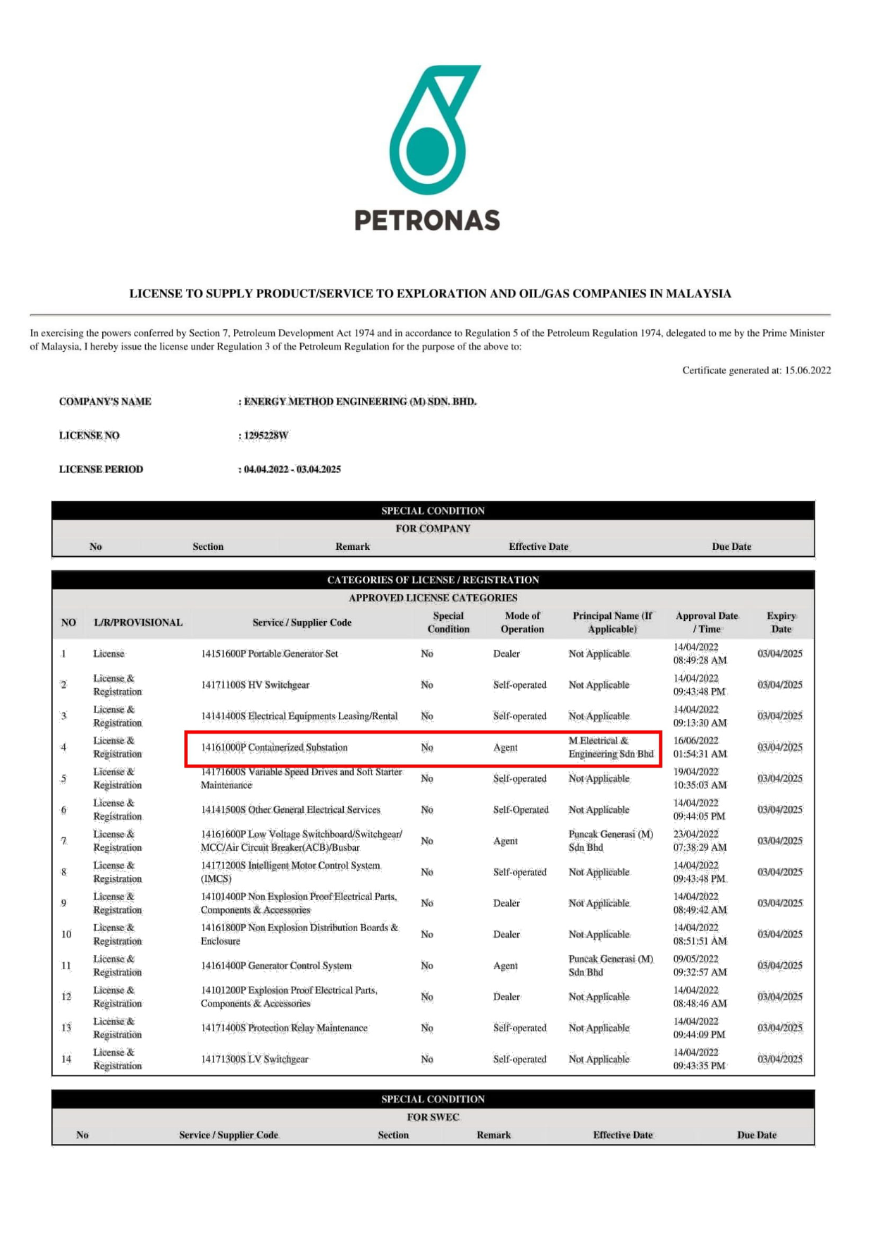 Sijil Guna Pakai from TNB for our Feeder Pillar which certified us as manufacturer and supplier to TNB